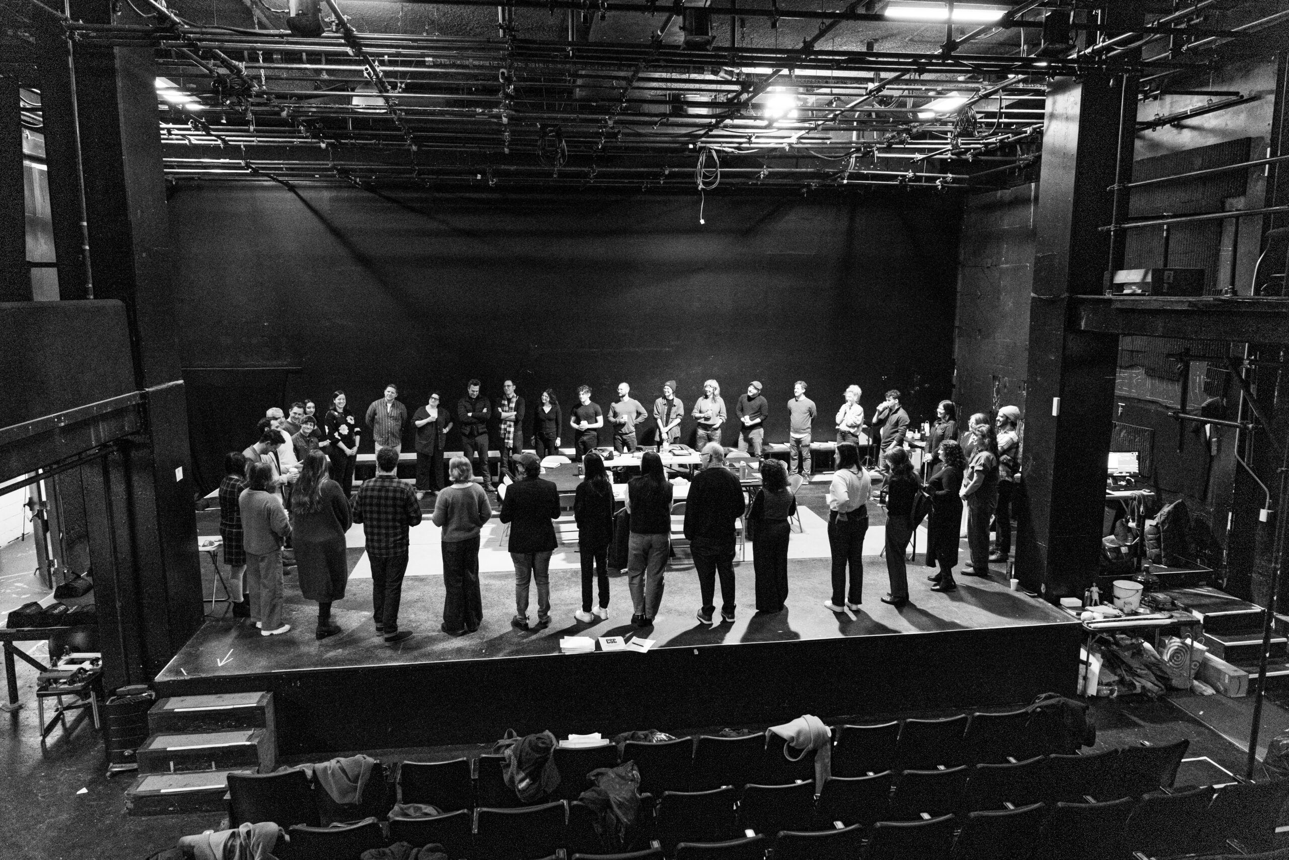 Notably, the entire company is composed of Jewish actors. When I asked Marshall Pailet if this was intentional on his and Slater’s part, the answer was a quick yes. “We decided early on we were interested in a Jewish cast,” he offered, also pointing out that nearly the entire rehearsal room, including designers and stage managers, is Jewish. “The point of it wasn’t so we could have conversations about Jewishness or Judaism [in the rehearsal room]. That isn’t the point. But the point is that we could if we wanted to, because everyone has a stake in it.”